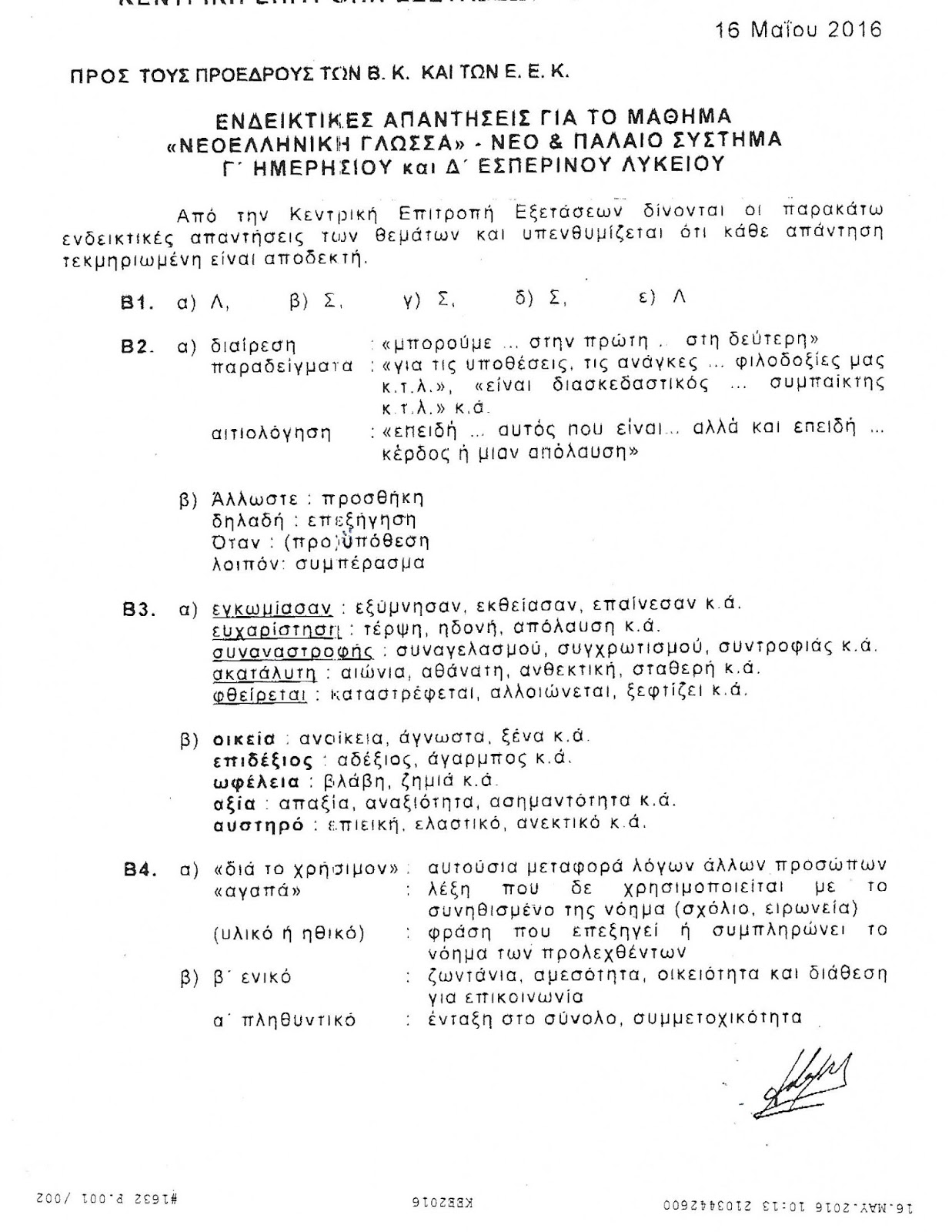 Ενδεικτικές Απαντήσεις Κ.Ε.Ε. Νεοελληνικής Γλώσσας Πανελλαδικών Εξετάσεων 2016